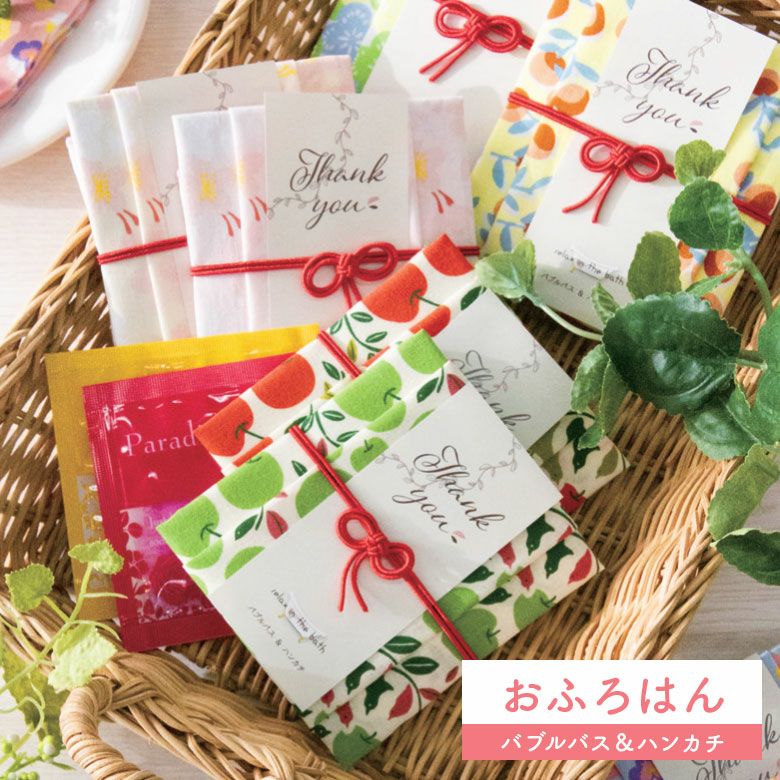 他の画像を見る あったかい ありがとう プチギフト 【おふろはん】 入浴剤とハンカチのプチギフト 10個セット ありがとうギフト おふろはん 1~3営業日発送 ¥ 6,000 税込 お気に入りに登録する