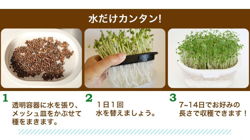 他の画像を見る 【プレーリードッグ ファーム】初めてでも簡単!スプラウト栽培 トライアルセット ブロッコリー スプラウト の種と栽培容器のセット 送料込 1~3営業日発送 ¥ 1,480 税込 お気に入りに登録する