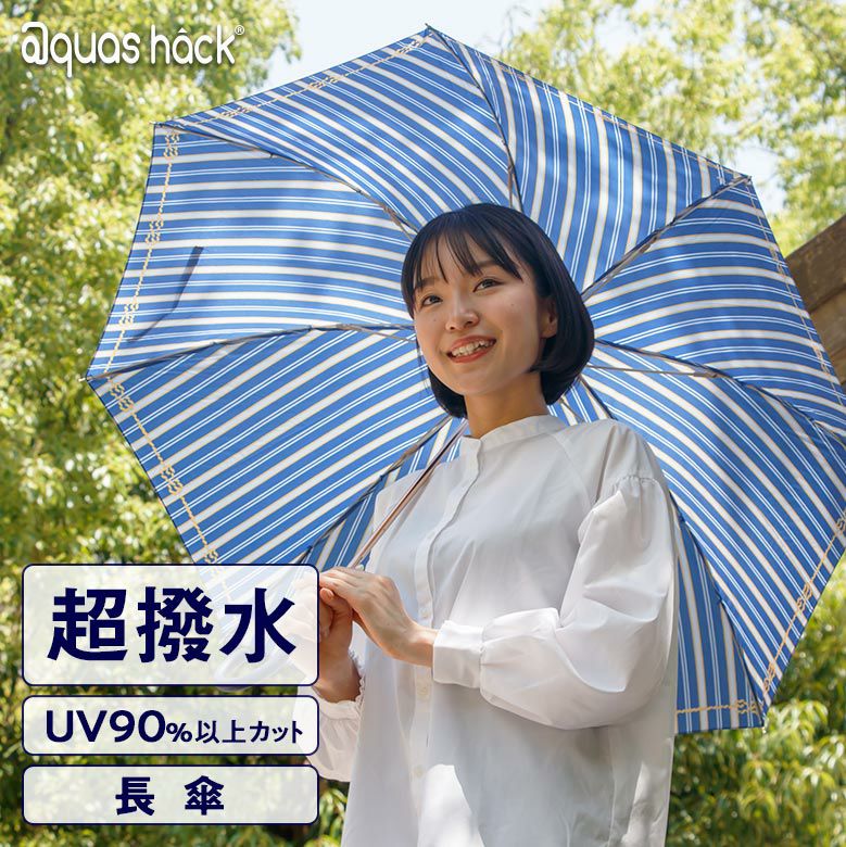 サっとひと振りで水を切れる、雨粒も丸い水滴にしてはじいてしまう超撥水生地のレディース 長傘。
