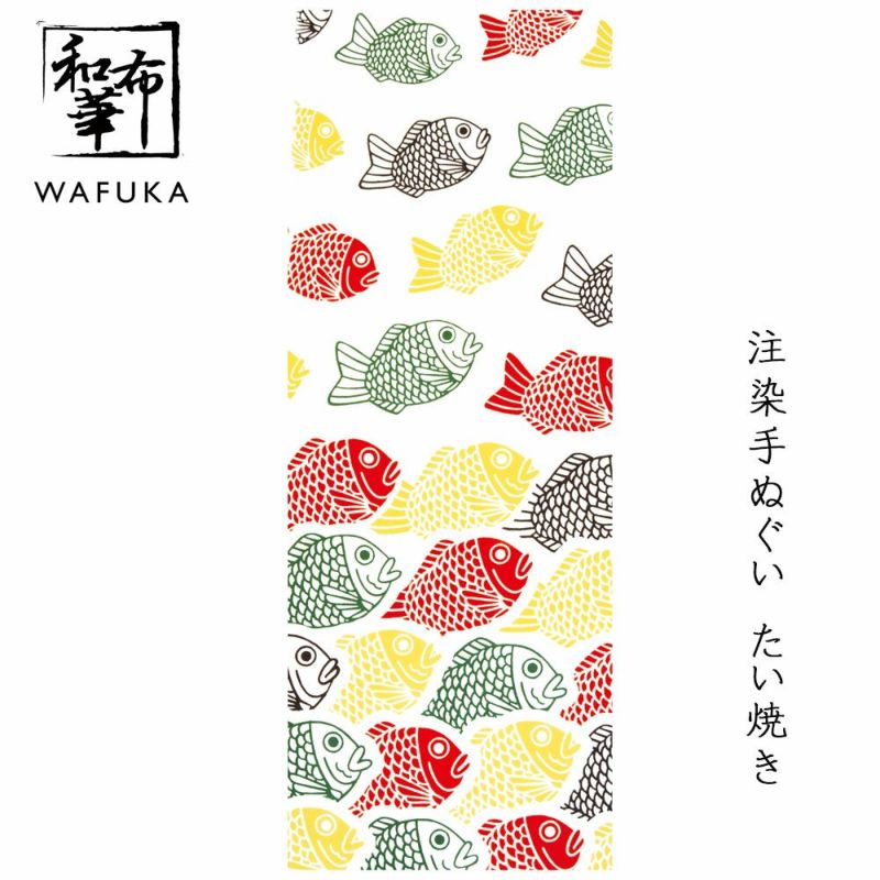 日本の伝統技法 注染 和布華 手ぬぐい 日本製 手ぬぐい たい焼き 和布華 てぬぐい 和柄