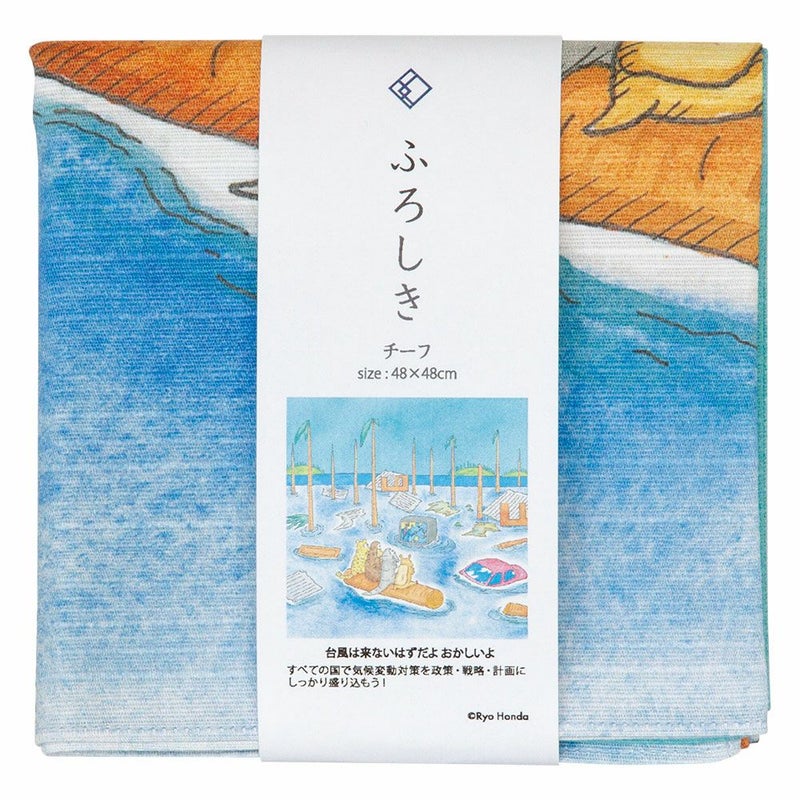 クリエイター本田亮さんのイラストでSDGsを楽しく学び、使って学ぶ。 何度でも繰り返し使えて、さまざまな使い方ができる風呂敷。 お弁当を包むのに最適なチーフサイズ。しっかり洗えて重い荷物も安心して包み込める綿シャンタン素材です。 使い込むほど、ソフトで優しい風合いになります。